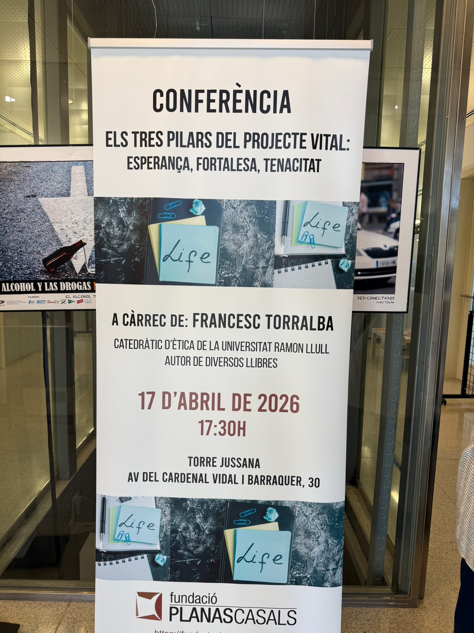 El passat 17 d’abril Torre Jussana va acollir la conferència “Els tres pilars del projecte vital: esperança, fortalesa, tenacitat”, impartida pel filòsof Francesc Torralba i Roselló i organitzada per la Fundació Planas Casals.